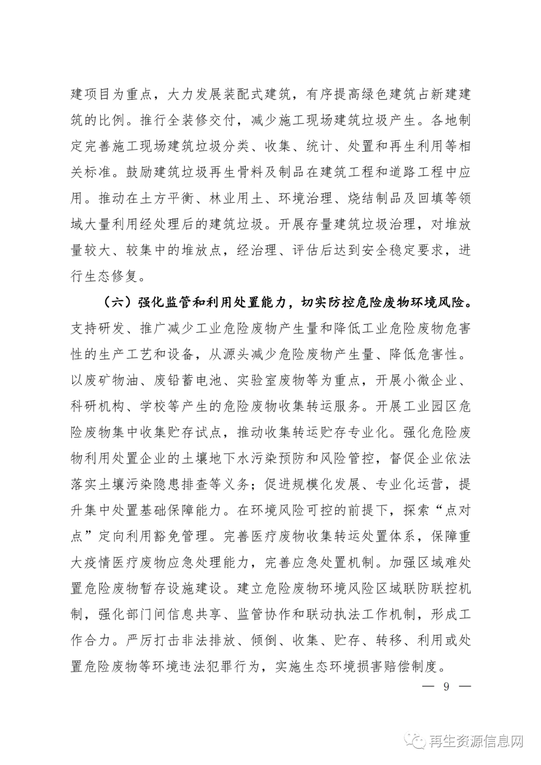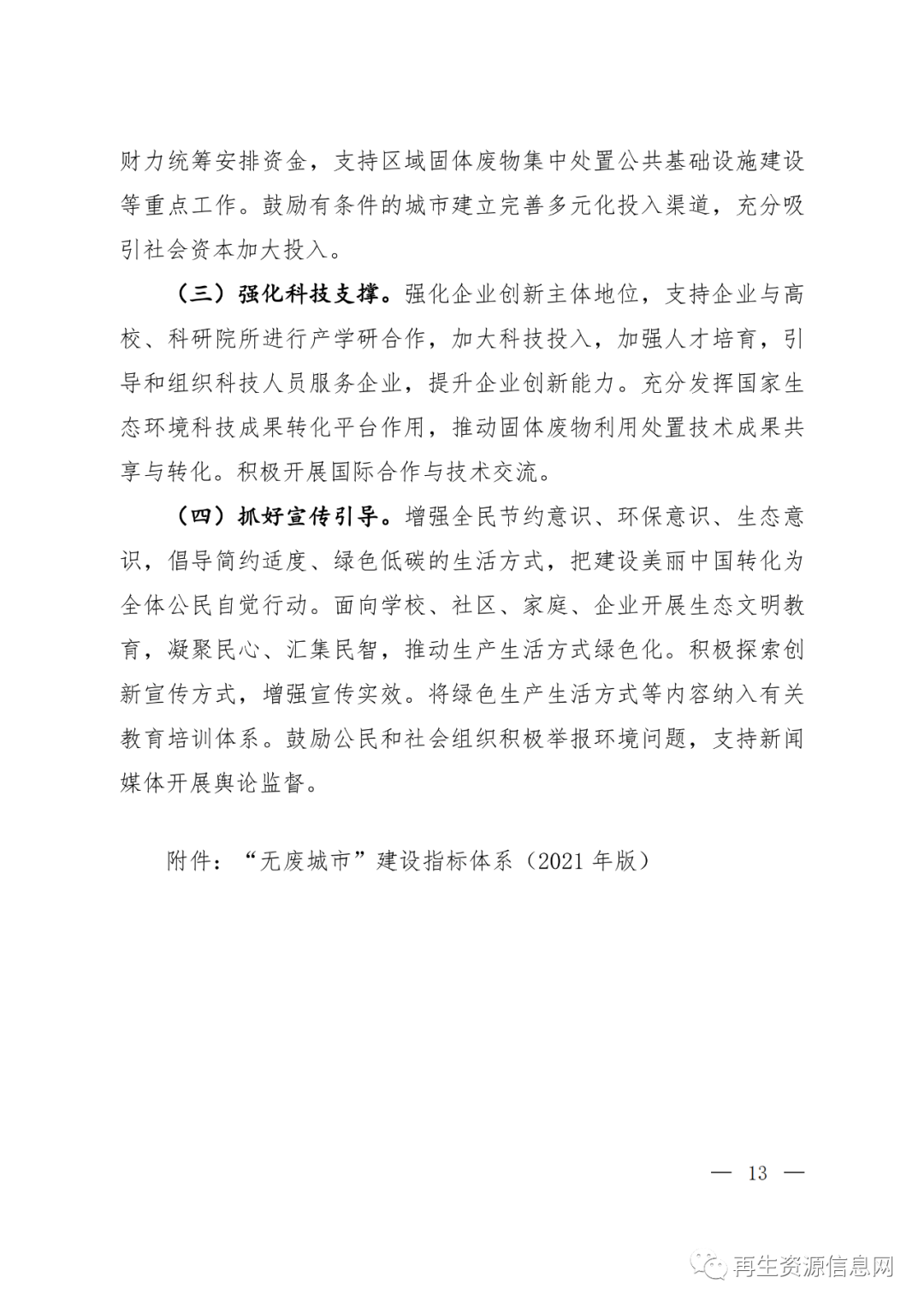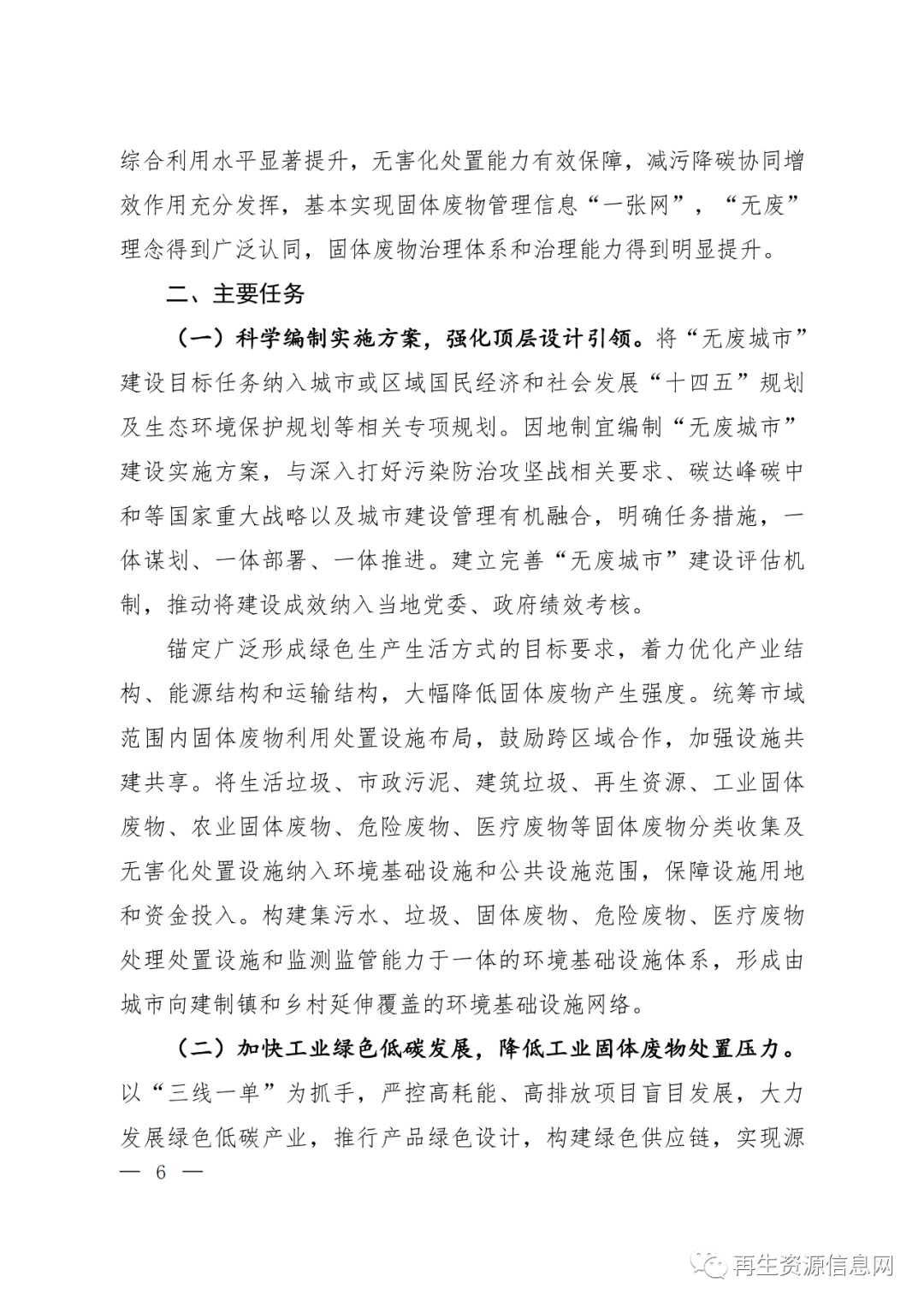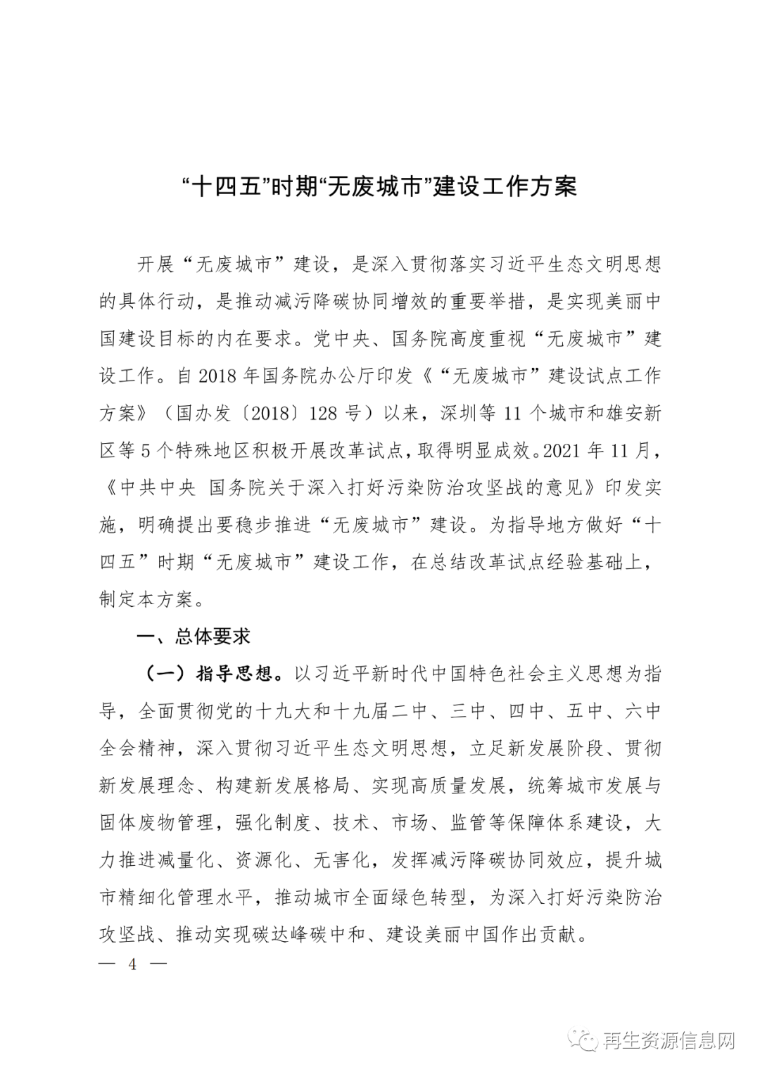 關(guān)于印發(fā)《“十四五”時(shí)期“無(wú)廢城市”建設(shè)工作方案》的通知