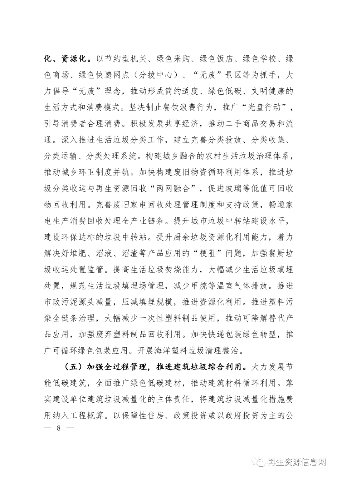 為深入貫徹落實(shí)《中共中央 國(guó)務(wù)院關(guān)于深入打好污染防治攻堅(jiān)戰(zhàn)的意見》,穩(wěn)步推進(jìn)“無(wú)廢城市”建設(shè),我們制定了《“十四五”時(shí)期“無(wú)廢城市”建設(shè)工作方案》,現(xiàn)予印發(fā),請(qǐng)認(rèn)真組織實(shí)施。