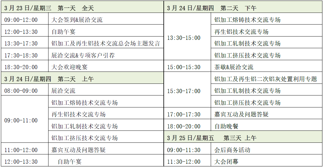 4大專場:設(shè)置鋁加工熔鑄、軋制、擠壓及再生鋁獨立專場,全面交流鋁加工及再生鋁產(chǎn)品技術(shù)創(chuàng)新、探討解決企業(yè)生產(chǎn)工藝難點;