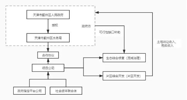 項(xiàng)目運(yùn)作模式和架構(gòu)。2019年5月,天津市薊州區(qū)人民政府發(fā)布《關(guān)于印發(fā)薊運(yùn)河(薊州段)全域水系治理、生態(tài)修復(fù)、環(huán)境提升及產(chǎn)業(yè)綜合開發(fā)EOD項(xiàng)目總體方案和市場化實(shí)施方案的通知》,對薊運(yùn)河(薊州段)EOD項(xiàng)目進(jìn)行總體部署。當(dāng)年8月,項(xiàng)目中標(biāo)候選人公示,中交天津航道局有限公司、中交疏浚(集團(tuán))股份有限公司、中交生態(tài)環(huán)保投資有限公司、中交第四航務(wù)工程勘察設(shè)計院有限公司與中交(天津)生態(tài)環(huán)保設(shè)計研究院有限公司聯(lián)合體為本項(xiàng)目的第一中標(biāo)候選人,項(xiàng)目工期為20年,中標(biāo)額約為65億元。該項(xiàng)目目前已順利確定社會資本方,已進(jìn)入項(xiàng)目執(zhí)行階段。