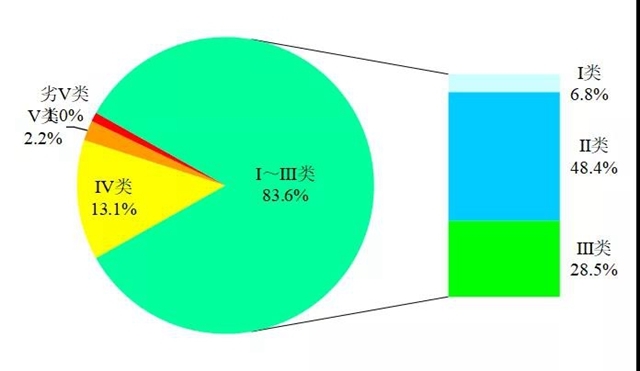 圖2 1-11月全國地表水水質(zhì)類別比例