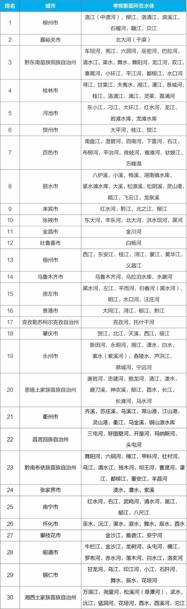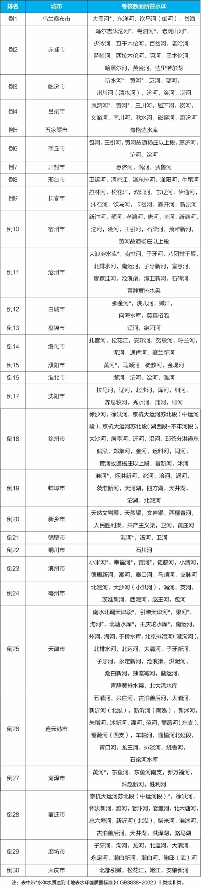 地級及以上城市國家地表水考核斷面排名