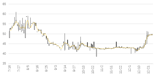 價(jià)格方面,截至12月24日,全國(guó)碳市場(chǎng)掛牌協(xié)議交易平均價(jià)格約45.9元/噸,最高價(jià)61.07元/噸,最低價(jià)38.5元/噸,絕大部分在40到60區(qū)間內(nèi)波動(dòng),總體呈現(xiàn)波動(dòng)降低的趨勢(shì),12月以來(lái)隨著履約期臨近,碳價(jià)開始逐步升高,從12月初的約42元/噸回升到50元/噸左右,12月21日大宗交易也出現(xiàn)了46.3元/噸的較高交易價(jià)格。氣候投融資試點(diǎn)工作將著力探索支持全國(guó)碳市場(chǎng)長(zhǎng)期平穩(wěn)運(yùn)行的相應(yīng)手段,推動(dòng)碳市場(chǎng)提供更穩(wěn)定的長(zhǎng)期價(jià)格信號(hào),促進(jìn)減排活動(dòng)的實(shí)施效率,同時(shí)也挖掘碳配額的價(jià)值,為企業(yè)減排活動(dòng)提供更全面的支持。