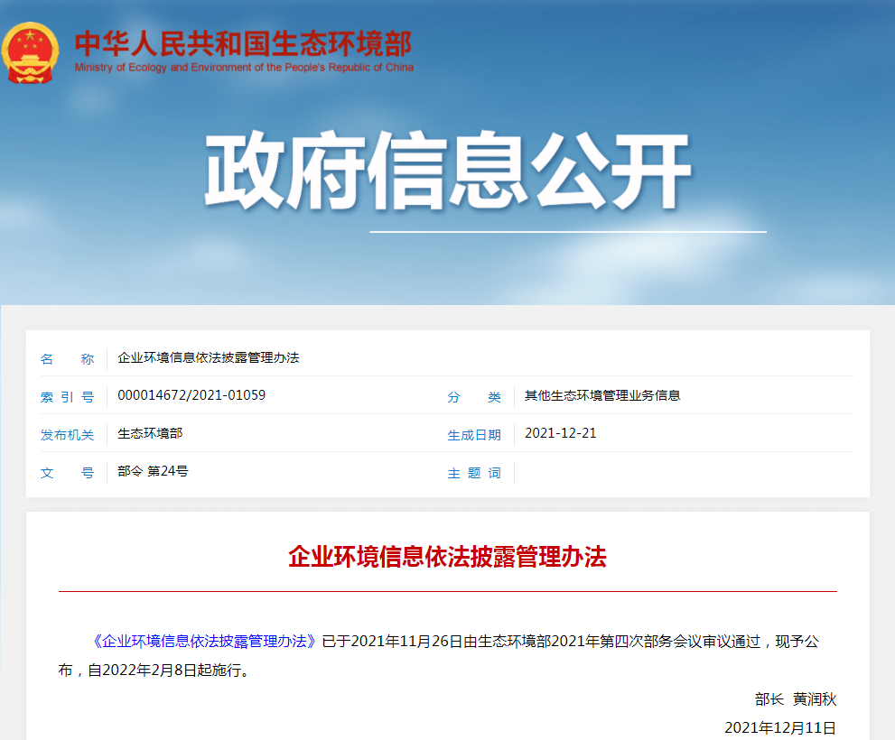 企業(yè)環(huán)境信息依法披露管理辦法