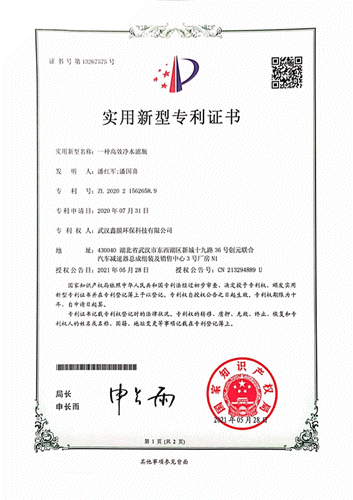 高效凈水濾瓶、節(jié)水工業(yè)純水設(shè)備、凈水器高密封接頭、便于連接的凈水PE管道、凈水RO膜、高效工業(yè)純水處理設(shè)備,六項內(nèi)容先后榮獲實用新型專利證書。鑫膜環(huán)保的“高能”輸出,為水處理難題提供了多款不同的解決方案。