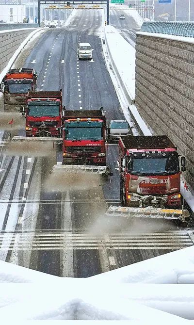 吉林省長(zhǎng)春市二道區(qū)城市管理局環(huán)衛(wèi)運(yùn)輸中心職工駕駛清雪車對(duì)機(jī)場(chǎng)快速路沿線進(jìn)行清雪作業(yè)。新華社記者 許 暢攝