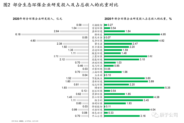 造成以上問題的原因很多,主要有兩個(gè):一是國內(nèi)生態(tài)環(huán)保行業(yè)之前一直處于簡單、粗暴的“跑馬圈地”時(shí)代,強(qiáng)政府關(guān)系和低成本融資成為這一階段企業(yè)制勝的“不二法寶”,這種“浮躁”的大環(huán)境導(dǎo)致很多企業(yè)“重投建、輕技運(yùn)”;二是創(chuàng)新型和革新型技術(shù)投入周期長,回報(bào)不明顯,很多企業(yè)尤其是三年任期制下的國企高層們?nèi)狈ψ銐蚰托?,容錯(cuò)機(jī)制缺失也讓他們對高風(fēng)險(xiǎn)的研發(fā)投入持謹(jǐn)慎態(tài)度,這從生態(tài)環(huán)保領(lǐng)域的上市企業(yè)的研發(fā)投入占收入的比重可見一斑(見圖2)。