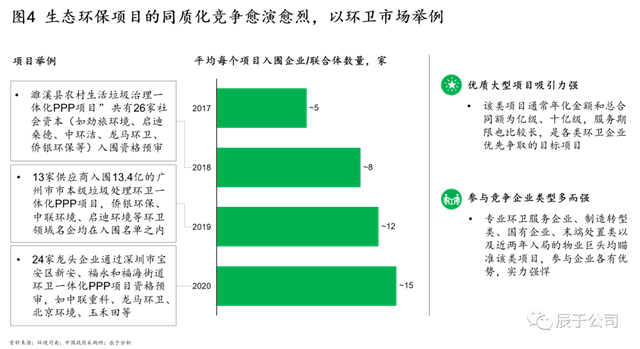這樣帶來的直接后果就是同質(zhì)化競爭愈演愈烈,價(jià)格戰(zhàn)時(shí)有發(fā)生,不僅影響企業(yè)的盈利水平,也對后期的運(yùn)營帶來隱患。由于缺乏有門檻的技術(shù)壁壘,一些環(huán)保項(xiàng)目的招標(biāo)活動(dòng)動(dòng)輒十幾家甚至數(shù)十家企業(yè)參加(見圖4),而針對一些技術(shù)難度大的項(xiàng)目,要么無人問津不敢接手,要么接手了之后最終陷于無計(jì)可施的尷尬境地。