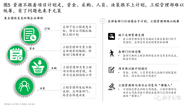 第二,項(xiàng)目公司、工程管理部與總部其他部門的博弈:項(xiàng)目管理是生態(tài)環(huán)保企業(yè)最重要的工作之一,項(xiàng)目公司和工程管理部是直接責(zé)任部門,自然希望其他部門能夠全力支持,但采購、造價(jià)、財(cái)務(wù)、人力等部門卻有自己的指標(biāo)和約束,工程又經(jīng)常出現(xiàn)計(jì)劃外事項(xiàng),往往需要大力協(xié)調(diào)才能推得動(dòng),嚴(yán)重時(shí)其他部門可能成為阻力。
