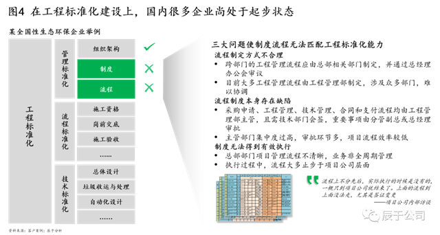 工程管理是項(xiàng)目落地的關(guān)鍵環(huán)節(jié),可以用“熱鬧”和“兩面”來形容生態(tài)環(huán)保行業(yè)的這一環(huán)節(jié):“熱鬧”是指工程管理多方參與,人員眾多,開工后熱火朝天,而為了推進(jìn)工程建設(shè)進(jìn)程,免不了大量的溝通甚至扯皮,部門間扯皮、甲乙方扯皮、上下級(jí)扯皮,同樣是個(gè)“熱鬧”場景;“兩面”是說工程開工意味著大筆投資,“正面”是企業(yè)投建邁出關(guān)鍵一步,業(yè)務(wù)擴(kuò)張,發(fā)展蒸蒸日上,工程建設(shè)也給一些企業(yè)帶來了當(dāng)期收入和利潤,“反面”是甲方的工程管理容易陷入混亂,計(jì)劃趕不上變化,行業(yè)超過一半的項(xiàng)目正發(fā)生著超概、延期的風(fēng)險(xiǎn)。