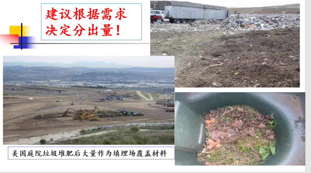我在現(xiàn)場就問當?shù)毓芾砣藛T,已經(jīng)形成這么好的肥料為什么還在填埋場填埋呢?得到的答案是:用不完。這種情況在美國很常見,盡管經(jīng)過哥倫比亞大學(xué)教授的研究論證,認為雖然在填埋場但不算填埋處理,而統(tǒng)計為填埋場覆蓋物,算作回收利用,但是這種現(xiàn)象其實說明,無論貼什么標簽,只要沒人用的就是垃圾,這個情況在全世界都是現(xiàn)實存在的。