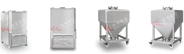3、錐形粉箱設(shè)計(jì)科學(xué),優(yōu)化重量控制,多種工況下都方便移動(dòng)。漏斗形結(jié)構(gòu)+鏡片拋光利于粉料在重力影響下自然出粉,不夾粉。