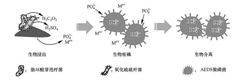 灰分磷回收包括生物法、濕式化學(xué)法、熱化學(xué)法。生物浸出(生物法)是指在一定工藝條件下利用微生物代謝活動產(chǎn)生的無機酸或分泌的有機酸使磷和金屬從灰分中浸出的過程;生物聚磷則是利用特定微生物的聚磷特性,從生物浸出液中特異性回收磷并與重金屬有效分離的過程。其中,氧化亞鐵硫桿菌能夠氧化亞鐵或將硫化物氧化為單質(zhì)硫進行增殖代謝;氧化硫硫桿菌能夠利用還原態(tài)硫和單質(zhì)硫作為底物生長,產(chǎn)生硫酸,兩種微生物可發(fā)揮協(xié)同作用產(chǎn)生硫酸,將磷和重金屬浸出。