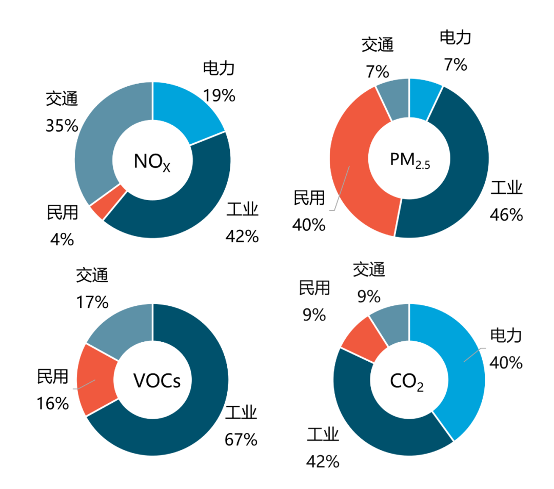 數(shù)據(jù)來(lái)源:污染物清單來(lái)自清華大學(xué) MEIC 清單結(jié)果 [6],CO2 排放數(shù)據(jù)來(lái)自生態(tài)環(huán)境部環(huán)境規(guī)劃院碳情速報(bào)研究結(jié)果 [19]