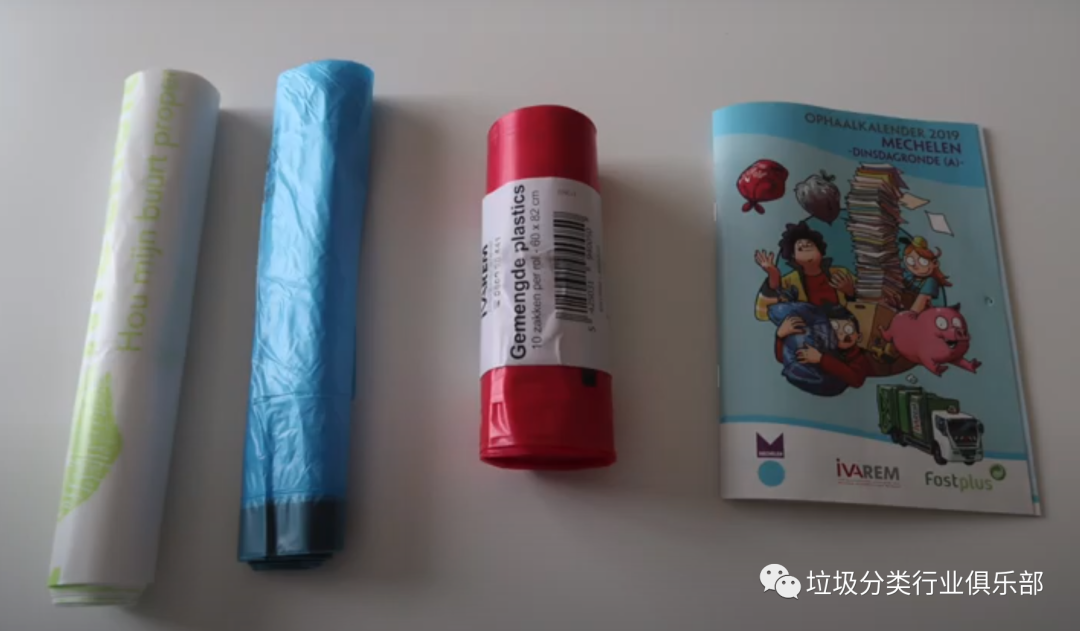 比利時人一般會從超市購買好幾種不同顏色的垃圾袋來分裝家庭垃圾,例如白色垃圾袋用來裝廚余垃圾等無法回收的垃圾;黃色垃圾袋用來裝舊報紙、紙質廣告宣傳品等,綠色垃圾袋則主要來裝花園里修剪下來的樹枝、雜草等園林垃圾。
