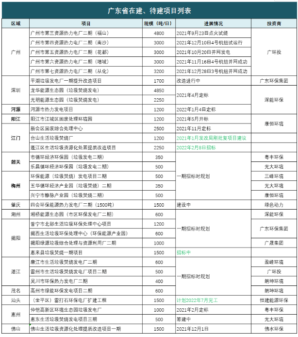 49350噸/日項(xiàng)目在建、待建,廣環(huán)投、深能環(huán)保領(lǐng)跑