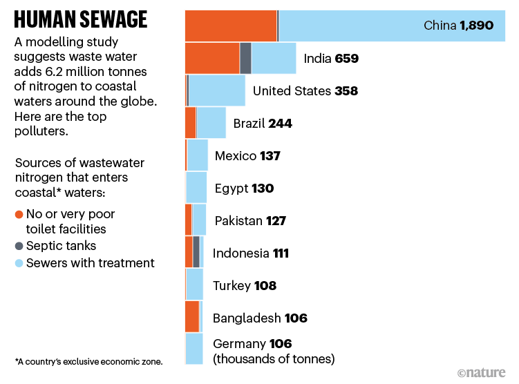 根據(jù)當(dāng)?shù)胤ㄒ?guī)和處理廠條件,從這個(gè)工藝中排出的出水仍可能含有大量氮和其他營養(yǎng)物質(zhì),以及一些其他污染物。而世界上57%的人口根本沒有連接到集中式污水處理廠(見“人類污水”)。