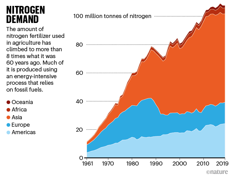 這并不容易,Larsen說。從工程角度來看,“處理尿液是一種糟糕的解決方案”,她說。除了水之外,最大部分是尿素,這是一種富含氮的化合物,是人體在代謝蛋白質(zhì)時(shí)產(chǎn)生的副產(chǎn)品。尿素本身是有用的:合成尿素是一種常見的氮肥(見“氮需求”)。但它也很棘手:當(dāng)與水結(jié)合時(shí),尿素會(huì)轉(zhuǎn)化為氨氣,這將使尿液具有特有的氣味。如果不加以控制,氨氣會(huì)發(fā)臭,污染空氣,并將寶貴的氮帶走。在廣泛存在的尿素酶的催化下,這個(gè)被稱為尿素水解的反應(yīng)可以在幾微秒內(nèi)完成,使尿素酶成為已知最有效的酶之一[4]。