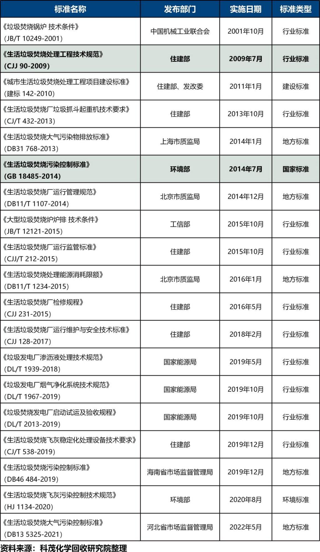 表2  垃圾焚燒發(fā)電行業(yè)相關標準