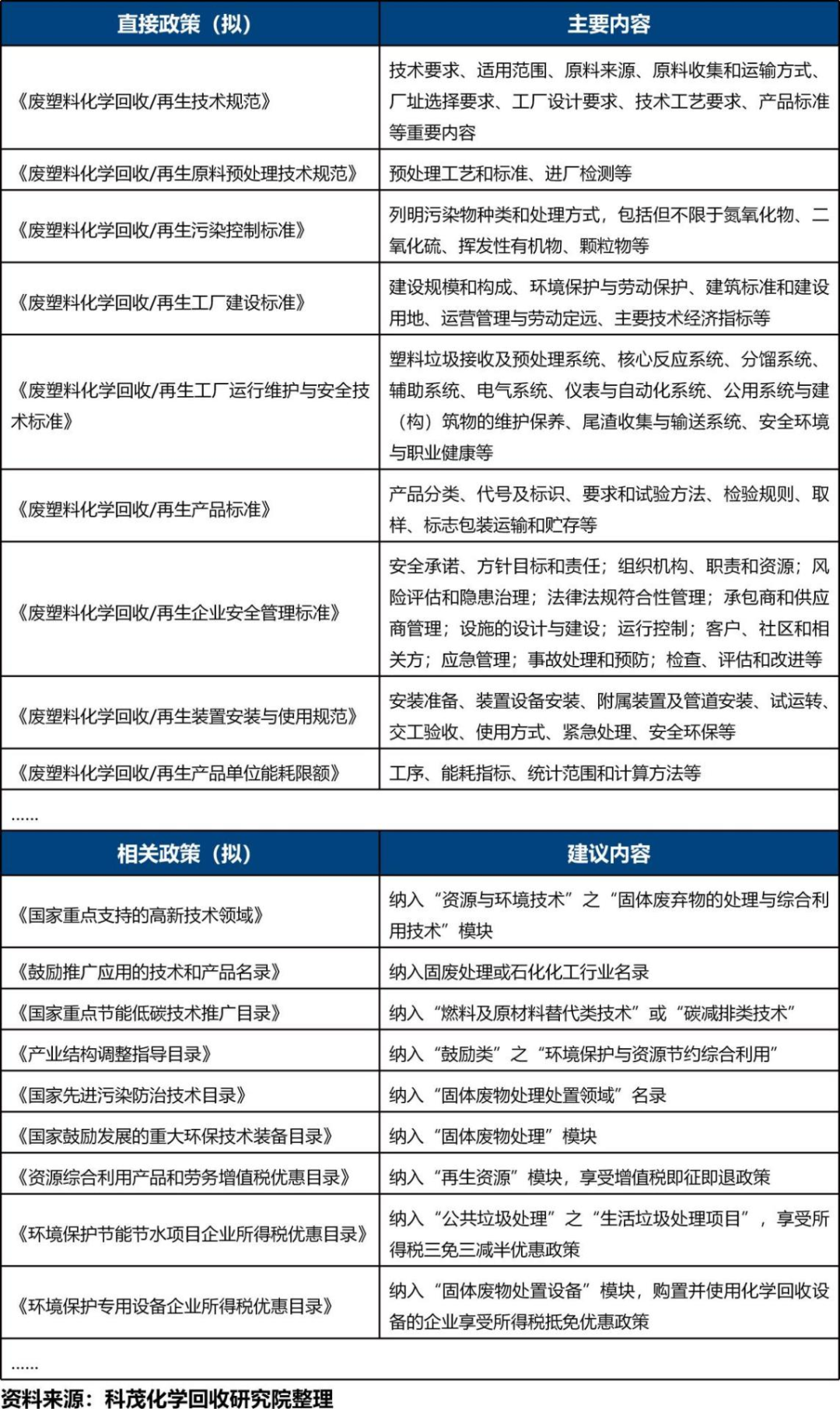 在此基礎上,可以預見相關技術適用范圍、原料來源、原料收集和運輸方式、廠址選擇要求、工廠設計要求、技術工藝要求、產(chǎn)品標準等重要內(nèi)容,也會隨著國內(nèi)化學回收項目落地逐步明確。