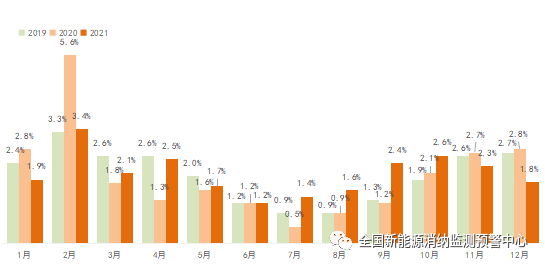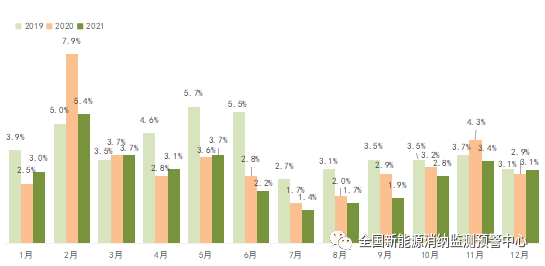 2021年全國(guó)棄風(fēng)率逐月變化情況