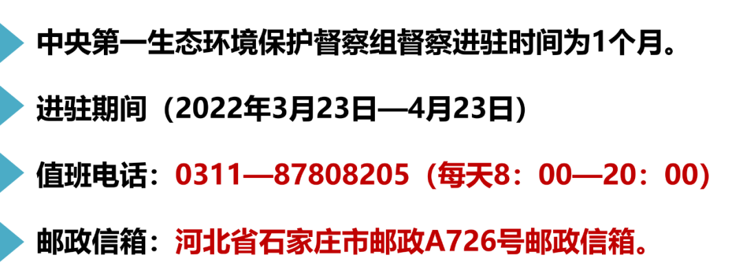 河北是我國工業(yè)大省、鋼鐵大省,肩負重要大氣防治、產(chǎn)能減壓任務,能力越大責任越大,在督查中率先鋪開各地動員會,石家莊、承德、保定、滄州、衡水、廊坊等地紛紛響應,為確保督查工作穩(wěn)步推進,23號開始,中央環(huán)保督察組已經(jīng)正式入駐河北,并公布了舉報地址及電話。