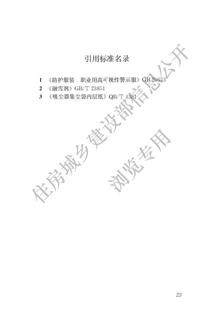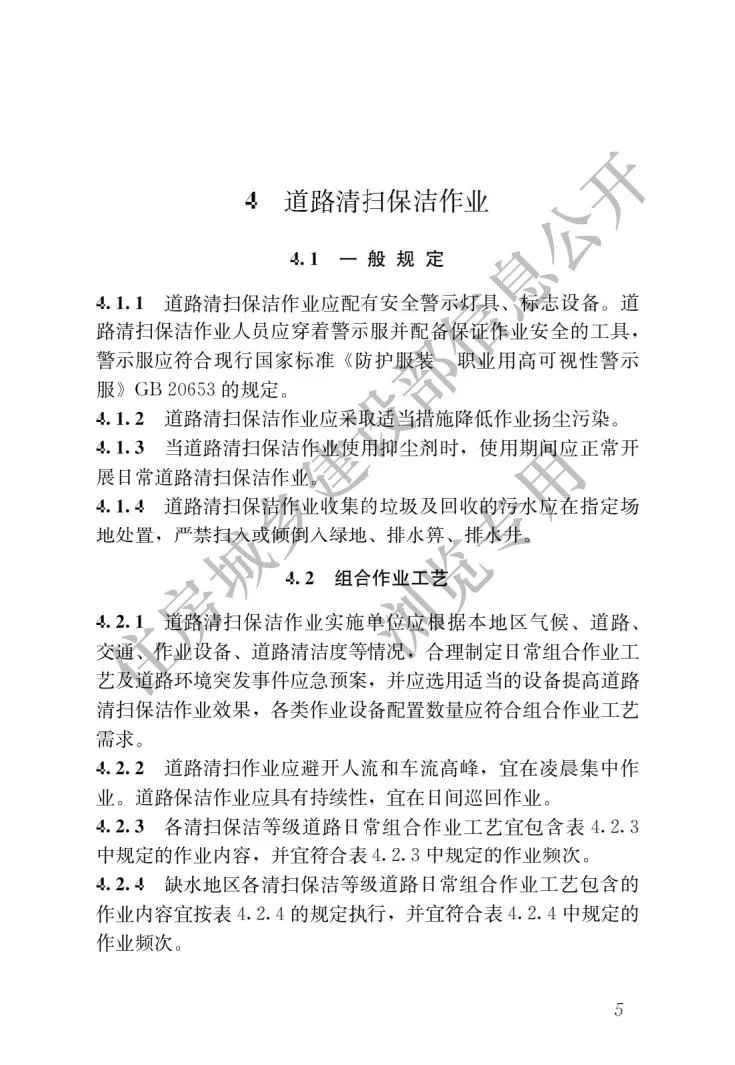 現(xiàn)批準(zhǔn)《城市道路清掃保潔與質(zhì)量評價標(biāo)準(zhǔn)》為行業(yè)標(biāo)準(zhǔn),編號為CJJ/T126-2022,自2022年5月1日起實施。原行業(yè)標(biāo)準(zhǔn)《城市道路清掃保潔質(zhì)量與評價標(biāo)準(zhǔn)》(CJJ/T126-2008)同時廢止。2.修改并增加了道路清掃保潔作業(yè)要求部分條款;3.調(diào)整了道路清掃保清質(zhì)量評價內(nèi)容;4.修改了道路感觀質(zhì)量檢查評價步驟方法;5.修改了道路可見垃圾及污漬密度檢測評價步驟方法;