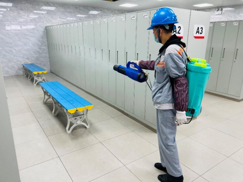 在各消殺現(xiàn)場,相關(guān)工作人員佩戴口罩、護(hù)目鏡,身穿防護(hù)服,根據(jù)不同場所即辦公區(qū)域、作業(yè)場所、集中居住區(qū)、公共區(qū)域、交通工具、垃圾箱房等不同的消殺方式、頻次和要點,結(jié)合疫情防控行業(yè)作業(yè)規(guī)范要求,進(jìn)行地毯式預(yù)防性消毒消殺工作,做到不留死角、不留盲區(qū),并建立消殺臺賬制度。