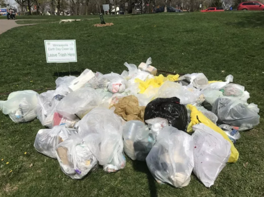 由于距離不遠(yuǎn),我們很快來到了公園門口,我們仔細(xì)地觀察了當(dāng)?shù)乩涞姆诸惽闆r,湊巧當(dāng)日為地球日,我們一行在公園門口遇到了志愿者收集的垃圾,并且分成了2堆擺放?;趪?yán)謹(jǐn)務(wù)實(shí)的工作作風(fēng)和對國內(nèi)崇洋媚外宣傳的不屑,我們持著懷疑地態(tài)度詳細(xì)驗(yàn)證了一下老美的分類是否真的做的那么完善,我們對2堆垃圾袋進(jìn)行了拍照取樣。