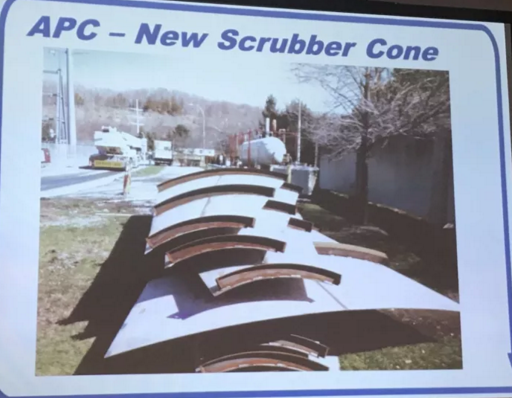 另一位是我們上次去美國參觀的一座焚燒廠的技術(shù)人員介紹了他們的一次最新的維修。這是Covanta旗下的美國紐約州的Onondago焚燒廠,由于我們是從事煙氣凈化系統(tǒng)的,我重點(diǎn)聽了一下他們煙氣區(qū)域的技改。這個(gè)廠在我上次去的時(shí)候,的確略顯破敗,已經(jīng)持續(xù)運(yùn)行了20來年了。說是技改,其實(shí)主要是對出渣系統(tǒng)、膨脹節(jié)、吸收塔錐體、除塵器灰斗、SNCR、DCS和CEMS的更新。看到這里,中國的土豪們是不是覺得老美好土,這么晚才上SNCR。