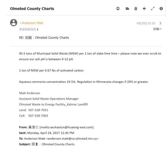 參觀的同時(shí),我們交流了一下大致的排放指標(biāo),由于時(shí)間久了具體排放限值數(shù)據(jù)記不清了,但印象中其排放指標(biāo)一般,甚至高于國內(nèi)現(xiàn)行的18485標(biāo)準(zhǔn)?;貒笪也殚喠讼嚓P(guān)資料,發(fā)現(xiàn)明尼阿波利斯的地方標(biāo)準(zhǔn)有所提高。其依據(jù)是我查閱了一個(gè)Olmsted焚燒廠3號線的環(huán)評報(bào)告,并注意到Olmsted的1.2號線的排放標(biāo)準(zhǔn)明顯寬于3號線的排放標(biāo)準(zhǔn),有興趣的同志可以往上翻幾頁看看Olmsted廠的排放標(biāo)準(zhǔn)。