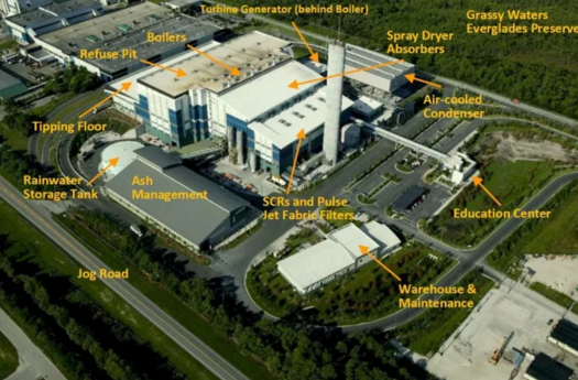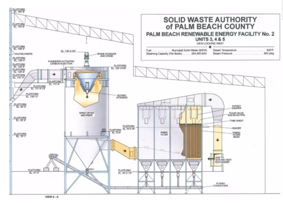 接下來說重點(diǎn),介紹一下這個(gè)焚燒廠。全廠為3x1000t/d的偉倫爐排,煙氣工藝采用了SDA+布袋+GGH+SGH+SCR。該廠位于特朗普老家,而且離得不遠(yuǎn),是目前美國最先進(jìn)的焚燒廠,也是第一座采用SCR工藝的焚燒廠,2012年開始建設(shè)至2015年投入商業(yè)運(yùn)行,隸屬于佛羅里達(dá)州海岸縣固廢管理局。