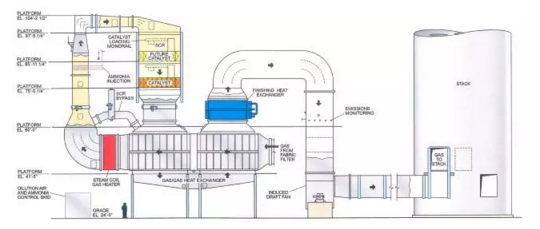 該廠主要燃料為城市生活垃圾,輔助燃料為天然氣。95MW的裝機(jī)容量,可供應(yīng)55000個(gè)家庭。單臺鍋爐供熱能力為:284,400 lb/h。我們關(guān)注的煙氣區(qū)域分為2個(gè)部分,SDA+SCR。