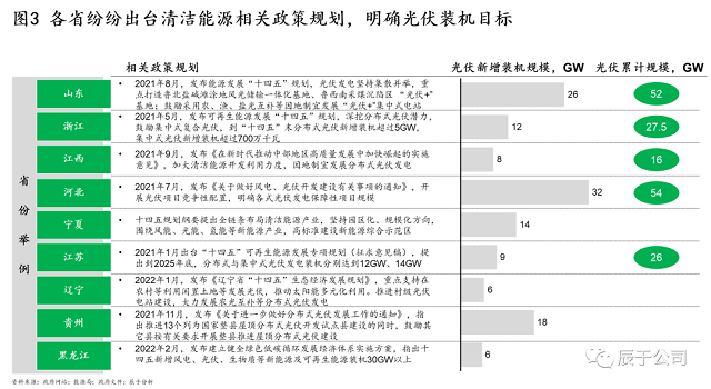 更加令人振奮的是,30·60雙碳風口之下,我國光伏行業(yè)正迎來新的發(fā)展契機,各省也在紛紛出臺光伏相關(guān)政策,明確光伏裝機目標,例如山東省在其能源發(fā)展“十四五”規(guī)劃中指出力爭到2025年末,光伏累計規(guī)模達到52GW,“十四五”期間省內(nèi)光伏新增裝機規(guī)模達26GW,相當于翻了一番(見圖3)。