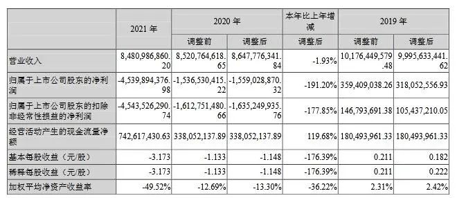 同日啟迪環(huán)境披露2021年年度報告,報告期內(nèi),公司實現(xiàn)營業(yè)收入84.81億元,同比下降1.93%,歸屬于上市公司股東凈虧損45.4億元,歸屬于上市公司股東的扣除非經(jīng)常性損益凈虧損45.44億元,基本每股收益-3.173元。