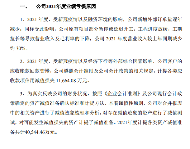 而這些,都可以看做是PPP暴雷后的次生危害,一直延續(xù)到了現(xiàn)在。這種影響,即使在企業(yè)完成混改后,也仍然需要很長(zhǎng)時(shí)間才能消化。比如,節(jié)能鐵漢就表示,長(zhǎng)達(dá)兩年多的經(jīng)營(yíng)困境,中節(jié)能集團(tuán)年初完成并購(gòu)后在管理方面做了大量的融合工作,公司在報(bào)告期內(nèi)仍處于修復(fù)狀態(tài),直接影響了公司經(jīng)營(yíng)。如果說行業(yè)屬性是根本原因,PPP暴雷是最大變量,那么新冠疫情就是“黑天鵝”和“灰犀?!?,使得環(huán)保行業(yè)“屋漏偏逢連夜雨”,進(jìn)一步加劇了情況的嚴(yán)重程度。比如,博世科就表示,受經(jīng)濟(jì)下行、全球新冠疫情反復(fù)、環(huán)境治理行業(yè)市場(chǎng)競(jìng)爭(zhēng)加劇等因素影響,報(bào)告期內(nèi)公司國(guó)內(nèi)外業(yè)務(wù)均受到了不同程度的影響,獲取訂單及項(xiàng)目實(shí)施不及預(yù)期。博天環(huán)境也解釋說,2021年度,受新冠疫情以及融資環(huán)境的影響,公司新增外部訂單量逐年減少;同樣受此影響,公司原有項(xiàng)目部分暫停或延遲開工,工程進(jìn)度放緩,工期拉長(zhǎng)等導(dǎo)致營(yíng)業(yè)收入及毛利率的下降,公司2020年年度營(yíng)業(yè)收入較上年同期減少約30%。還有,2021年度,受新冠疫情、經(jīng)濟(jì)下行等外部綜合因素影響,博天客戶的應(yīng)收賬款回款變慢,公司遵照會(huì)計(jì)準(zhǔn)則及公司會(huì)計(jì)政策的相關(guān)規(guī)定,還計(jì)提各類應(yīng)收款項(xiàng)信用減值損失約21,900萬元。總之,疫情對(duì)環(huán)保企業(yè)的影響是全方位的,既有新增訂單的影響,也有現(xiàn)有項(xiàng)目工程的影響,還有應(yīng)收賬款回款速度的影響,給環(huán)保企業(yè)造成了不小的麻煩。