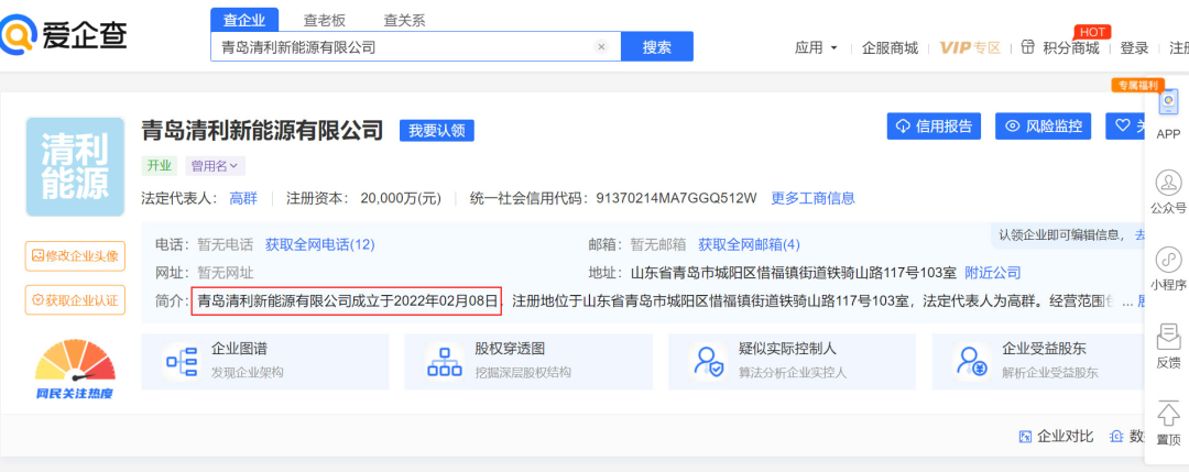更有意思的是,清利新能源其實是一家非常年輕的公司,它的成立時間是“2022年2月8日”,直到現(xiàn)在還不足3個月時間。