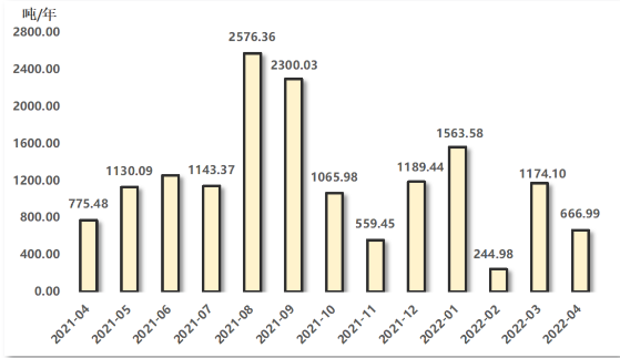 浙江省排污權(quán)交易指數(shù)高位回落。2022年4月,排污權(quán)交易指數(shù)回落至316.58點,環(huán)比跌幅為27.99%,與上年同期相比下跌32.64%。
