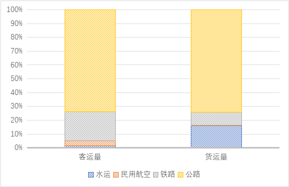 我國交通運輸行業(yè)碳排放以公路為主。我國交通運輸主要由公路、鐵路、水運、民用航空等方式組成,從各類交通運輸方式的運輸量來看,現(xiàn)階段我國公路運輸承載量最大,據(jù)國家統(tǒng)計局數(shù)據(jù),2020年我國公路客運量占總客運量的71%,公路貨運量占總貨運量的72%。以公路交通為主的運輸結構直接使得公路運輸成為交通領域的重要碳排放源,據(jù)公開信息,2019年公路運輸碳排放以占全國交通領域碳排放總量74%的水平,居各類運輸方式之首。