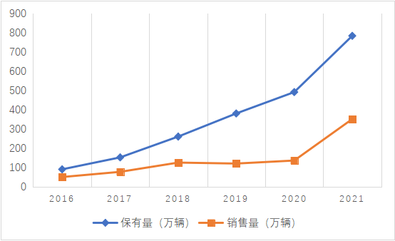圖 3 2016年至2021年我國新能源車輛保(銷)量水平