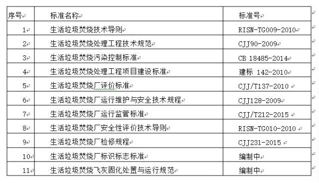 生活垃圾清潔焚燒在我國已經(jīng)有將近30多年的歷史,垃圾焚燒處理技術(shù)裝備日趨成熟,產(chǎn)業(yè)鏈條、骨干企業(yè)和建設(shè)運(yùn)行管理模式逐步形成,相關(guān)的設(shè)計(jì)、建設(shè)、運(yùn)行標(biāo)準(zhǔn)和評(píng)價(jià)體系也日趨成熟完善。近年來一些標(biāo)準(zhǔn)和規(guī)章制度相繼實(shí)施: