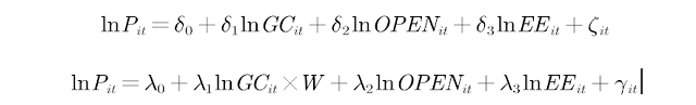 在公式(1)中,i代表地區(qū);t代表年份;P是環(huán)境質(zhì)量的指標(biāo);GC代表綠色信貸的規(guī)模??刂谱兞堪∣PEN(開放度)、EG(環(huán)境治理)和EE(能源效率)。在公式(2)中,W是調(diào)節(jié)變量,包括。ROE(企業(yè)績效)、TECH(企業(yè)創(chuàng)新)、RIS(產(chǎn)業(yè)結(jié)構(gòu)合理化)、OIS(產(chǎn)業(yè)結(jié)構(gòu)優(yōu)化)。