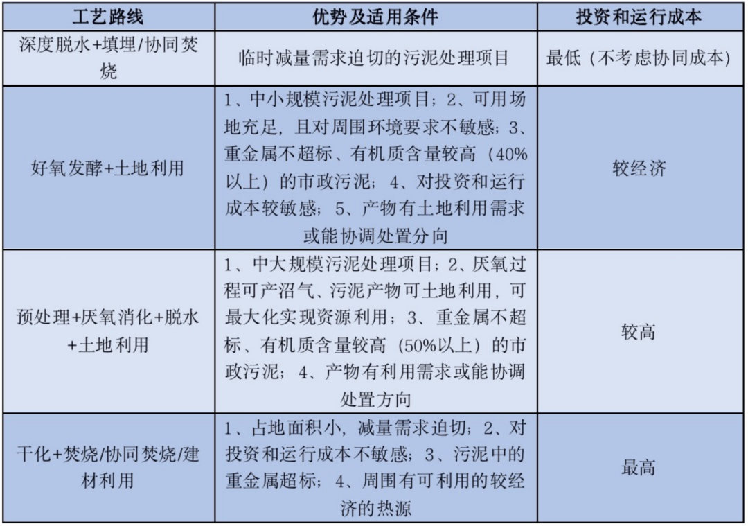 綜上所述,目前國(guó)內(nèi)污泥處理處置主要有以下4條主流工藝路線: