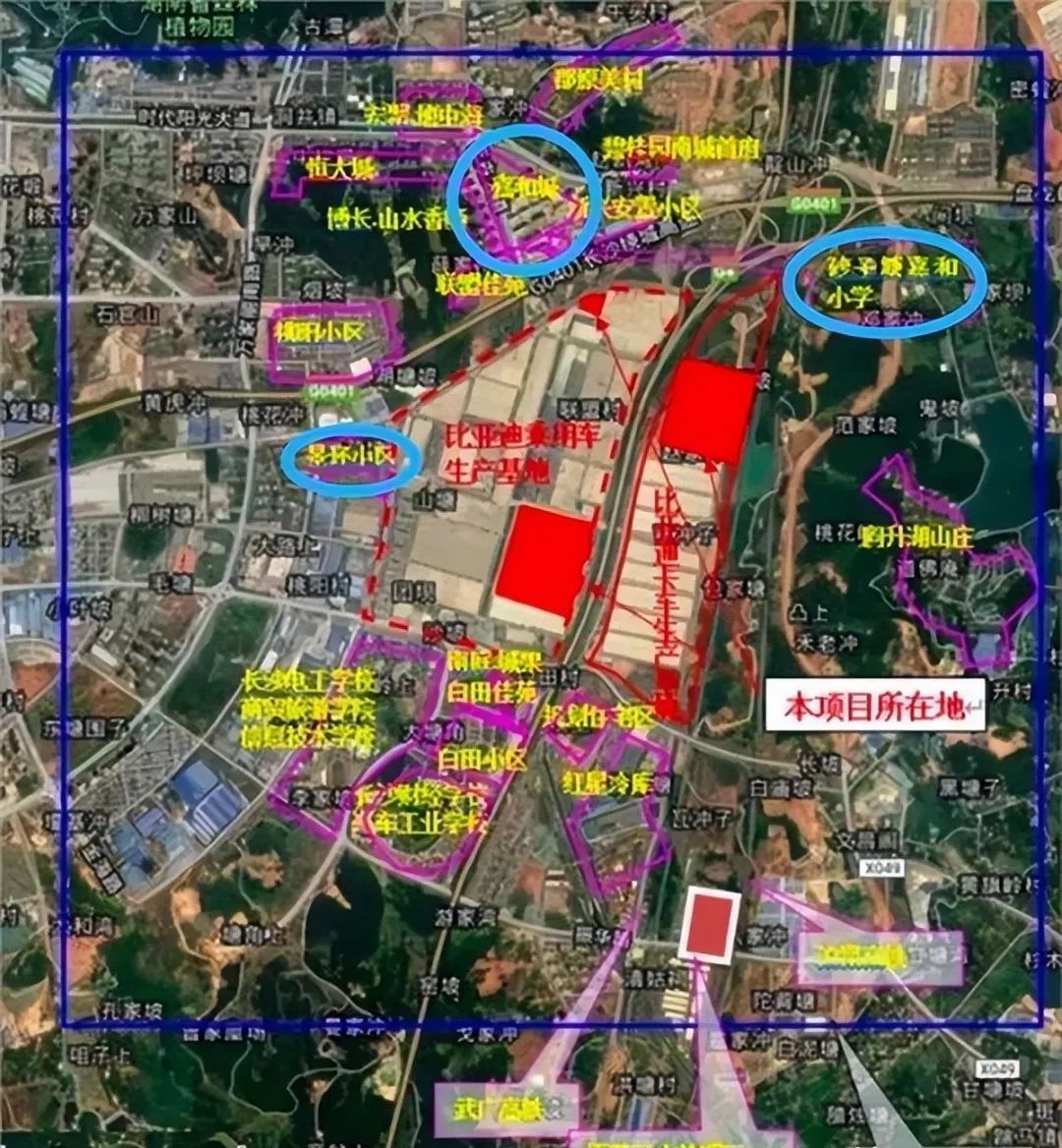 同時根據(jù)國家汽車制造廠衛(wèi)生防護距離標準,規(guī)定工廠與居住區(qū)的距離從300米至500米不等。而比亞迪工廠距離有些小區(qū)甚至只有40米、50米,距嘉和學(xué)校僅有300米。