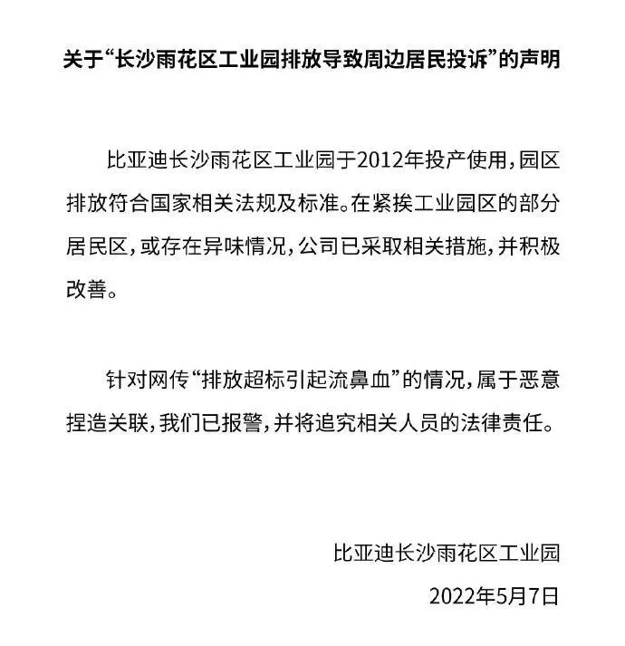 環(huán)保意識淡薄是國內(nèi)企業(yè)的通病,別看一天天“綠色發(fā)展”的口號喊得震天響,但落在動作上卻是另一回事。擺在眼前的事實就是,比亞迪這樣的新能源企業(yè)照樣沒有環(huán)保理念,甚至在問題出現(xiàn)后有極強的蒙混過關(guān)的心態(tài)。此次事件已經(jīng)不是比亞迪第一次因為環(huán)境問題觸犯眾怒了,可以說是2011年比亞迪深圳工廠故事的重演。彼時,比亞迪曾計劃斥資82億元,在深圳市龍崗區(qū)寶龍工業(yè)區(qū)興建一座新能源材料基地,號稱“世界最大的新能源電池廠”,項目用地距離周邊居民區(qū)僅百余米,一路之隔的鄰居們對污染隱患強烈抗爭。當年10月,該計劃被叫停,11月,該規(guī)劃被變更。變更規(guī)劃后,被移除的生產(chǎn)環(huán)節(jié)搬往了其他地區(qū),其中包括長沙。2019年,長沙市生態(tài)環(huán)境局官網(wǎng)上公布的《長沙市省級環(huán)保督察反饋問題第四十七項整改情況公示》顯示,長沙比亞迪因噴涂車間生產(chǎn)廢氣排放的污染物影響附近居民生活被作為重點被投訴企業(yè),被納入重點監(jiān)管對象。2021年5月8日,在湖南省生態(tài)環(huán)境廳官網(wǎng)上,一份群眾信訪舉報轉(zhuǎn)辦和邊督邊改公開情況一覽表顯示,對于長沙市雨花區(qū)比亞迪制造廠涂裝車間油漆味嚴重、影響居民生活問題,經(jīng)雨花經(jīng)開區(qū)管委會、同升街道、區(qū)生態(tài)環(huán)境分局、區(qū)生態(tài)環(huán)境執(zhí)法大隊聯(lián)合調(diào)查核實,情況基本屬實。可見伴隨著比亞迪業(yè)績的快速增長,環(huán)境污染問題是一直存在的。此次在長沙比亞迪雨花區(qū)工廠停工整頓之前,勢頭正勁的比亞迪一定不會想到火爆的生意會因為環(huán)境問題停下產(chǎn)線。而這種“想不到”是企業(yè)對待污染問題的一種普遍和慣性心理。這個事件能夠反映出一個事實,一些產(chǎn)生污染的大企業(yè)對環(huán)保的認知還不夠。從比亞迪《關(guān)于“長沙雨花區(qū)工業(yè)園排放導(dǎo)致周邊居民投訴”的聲明》中可以看到明顯的推卸責任的意愿和強勢的威懾。比亞迪的聲明,有一種大企業(yè)、優(yōu)秀企業(yè)的傲慢和草率,這是國內(nèi)企業(yè)面對環(huán)境污染這樣的社會問題的普遍態(tài)度。一直以來這些企業(yè)國內(nèi)的生存和發(fā)展機制中是缺少這一環(huán)的。環(huán)保是比亞迪品牌升華過程中必須要過的一關(guān),畢竟一家優(yōu)秀的新能源產(chǎn)品公司長期存在污染問題,故事無論如何是講不通的。當然,辯證地看,這次事件對比亞迪也是好事,工廠能夠在訂單旺盛之際停工整頓,足見高層清醒的認知的果敢的魄力。以比亞迪能夠在國內(nèi)出類拔萃的這一部分品質(zhì)和能力,是一定能夠借此機會決好自身的污染問題并真正踐行綠色發(fā)展理念的。