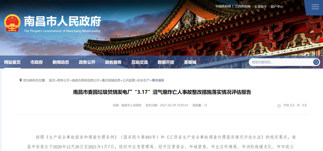 5、南昌麥園垃圾焚燒發(fā)電廠“3.17”沼氣爆炸亡人事故調(diào)查報(bào)告,南昌市應(yīng)急管理局,2020-04-20