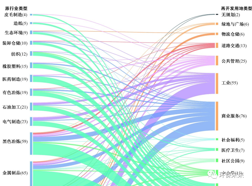 圖 3 污染場(chǎng)地修復(fù)/管控前后的場(chǎng)地用地類型Fig.3 Land use type before and after remediation/control of contaminated sites