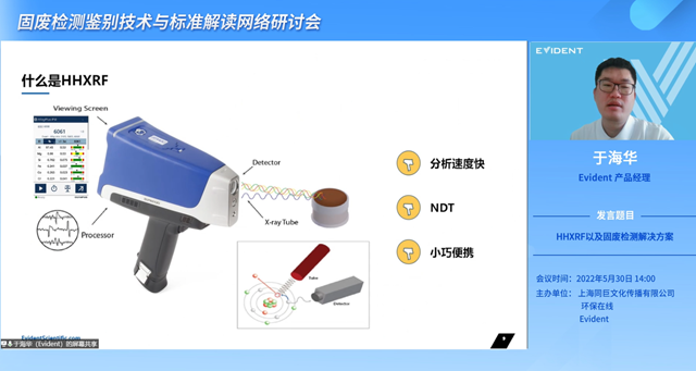 5月30日下午14點(diǎn),固廢檢測鑒別技術(shù)與標(biāo)準(zhǔn)解讀網(wǎng)絡(luò)研討會正式召開,由青島海關(guān)技術(shù)中心正高級工程師張慶建、Evident 產(chǎn)品經(jīng)理于海華、南京海關(guān)工業(yè)產(chǎn)品檢測中心研究員 礦產(chǎn)科科長鄭建明三位專業(yè)級選手組成的固廢處理處置優(yōu)質(zhì)隊伍,開啟深入、漸強(qiáng)的環(huán)保攻勢。