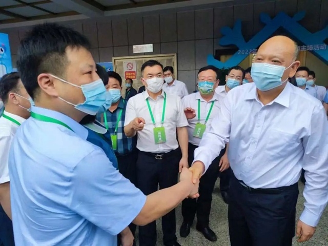 在活動(dòng)現(xiàn)場,副省長李建中與九九智能環(huán)保董事長劉黎明進(jìn)行了親切交流。