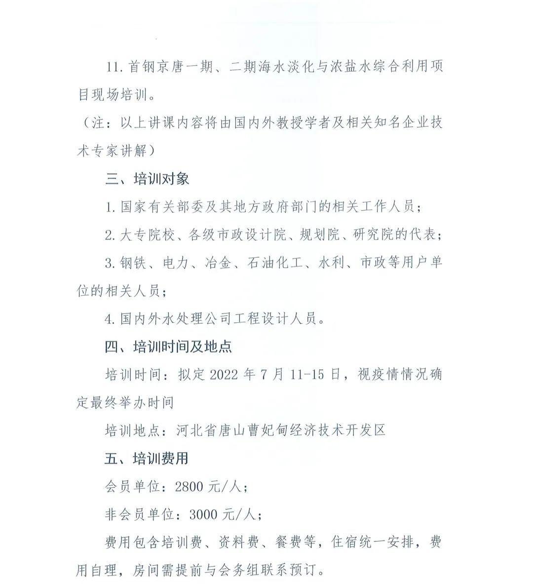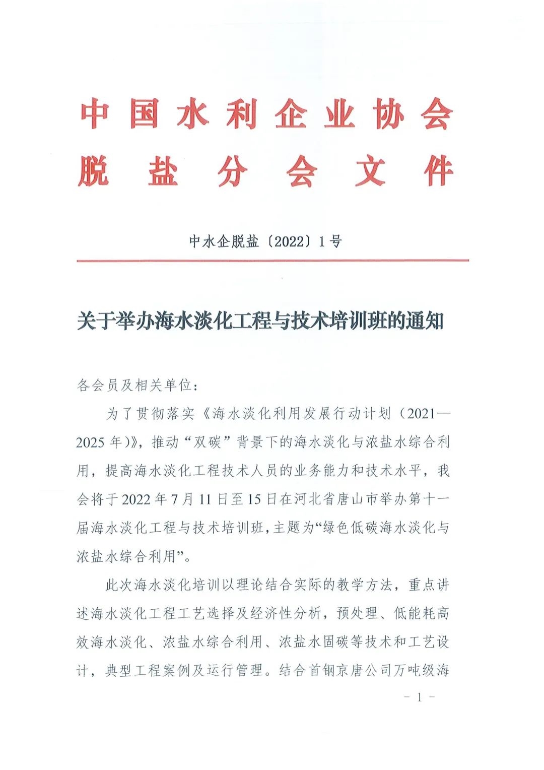 為了貫徹落實(shí)《海水淡化利用發(fā)展行動(dòng)計(jì)劃(2021—2025年)》,推動(dòng)“雙碳”背景下的海水淡化與濃鹽水綜合利用,由中國(guó)水利企業(yè)協(xié)會(huì)脫鹽分會(huì)主辦的第十一屆海水淡化工程與技術(shù)培訓(xùn)班計(jì)劃于2022年7月11日至15日在河北省唐山市曹妃甸區(qū)舉辦,本屆海水淡化培訓(xùn)班的主題是“綠色低碳”海水淡化與濃鹽水綜合利用,課程內(nèi)容豐富充實(shí),教學(xué)質(zhì)量專業(yè)。此次培訓(xùn)以理論結(jié)合實(shí)踐的教學(xué)方法,結(jié)合首鋼京唐公司“燃-熱-電-水-鹽”五效一體高效循環(huán)利用技術(shù)現(xiàn)場(chǎng)進(jìn)行實(shí)踐教學(xué)。